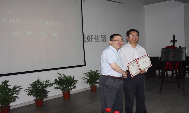 集團(tuán)領(lǐng)導(dǎo)陳國榮和沈謙祥共同完成了紡織研究院的揭牌,并由集團(tuán)領(lǐng)導(dǎo)呂軍為陳運能院長頒發(fā)了紡織研究院名譽(yù)院長的聘書。