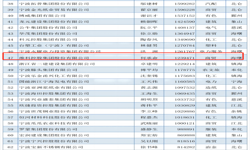 近日,寧波市企業(yè)聯(lián)合會(huì)、寧波市企業(yè)家協(xié)會(huì)、寧波市工業(yè)經(jīng)濟(jì)聯(lián)合會(huì)共同發(fā)布了2023寧波企業(yè)綜合百?gòu)?qiáng)榜,以及制造業(yè)、服務(wù)業(yè)、競(jìng)爭(zhēng)力百?gòu)?qiáng)榜。維科集團(tuán)榮獲2023寧波市綜合企業(yè)百?gòu)?qiáng)第47名, 2023寧波市服務(wù)業(yè)企業(yè)百?gòu)?qiáng)第14名,再次彰顯企業(yè)綜合實(shí)力。