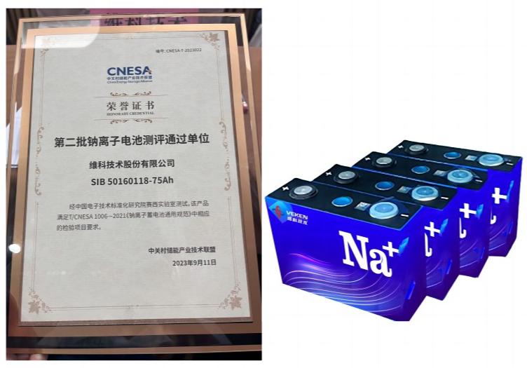 2023年9月11日,工信部綠色電池重點實驗室成立大會暨學術(shù)委員會年度工作會在北京成功召開,同時頒發(fā)了全國第二批鈉離子電池測評通過單位證書。在此次測評中,共有8家企業(yè)成功通過了測評,其中維科技術(shù)股份有限公司的SIB 50160118-75Ah鈉電池以卓越的技術(shù)研發(fā)和出色的產(chǎn)品性能通過了鈉離子電池測評。