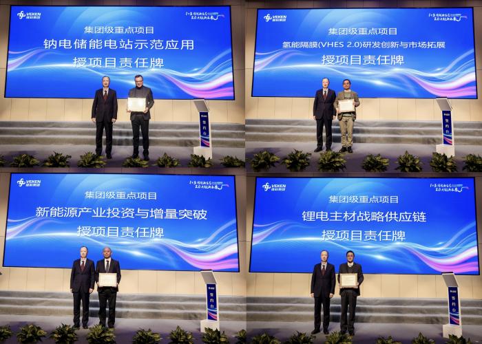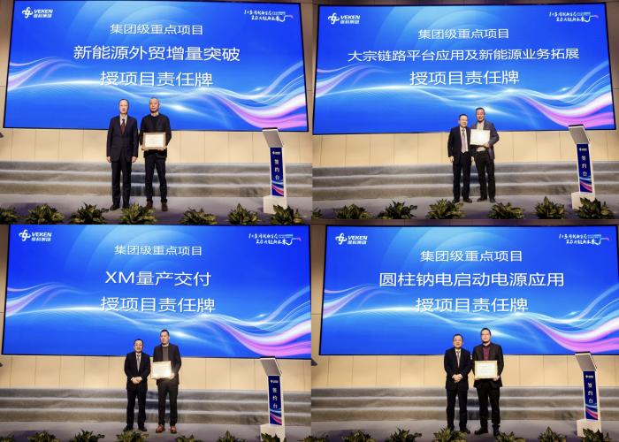會上,鈉電儲能電站示范應(yīng)用、氫能隔膜( VHES 2.0)研發(fā)創(chuàng)新與市場拓展、新能源產(chǎn)業(yè)投資與增量突破、鋰電主材戰(zhàn)略供應(yīng)鏈、新能源外貿(mào)增量突破、大宗鏈路平臺應(yīng)用及新能源業(yè)務(wù)拓展、XM量產(chǎn)交付、圓柱鈉電啟動電源應(yīng)用等八個(gè)集團(tuán)級重點(diǎn)項(xiàng)目的責(zé)任人從項(xiàng)目意義、項(xiàng)目目標(biāo)、團(tuán)隊(duì)成員、項(xiàng)目工作措施、項(xiàng)目存在風(fēng)險(xiǎn)及應(yīng)對、項(xiàng)目里程碑節(jié)點(diǎn)、項(xiàng)目資源需求等方面對項(xiàng)目進(jìn)行了解碼發(fā)布。集團(tuán)考薪委主任陳總,高新董事長、維科技術(shù)考薪委主任呂總對重點(diǎn)項(xiàng)目分別作了對賭考核要求,項(xiàng)目責(zé)任人簽署了責(zé)任狀,并授予了重點(diǎn)項(xiàng)目責(zé)任牌。