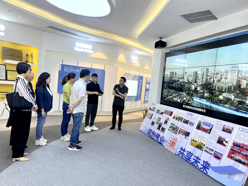 唐院長(zhǎng)一行首先參觀了維科集團(tuán)展廳。維科集團(tuán)董事會(huì)秘書、總干部部副總經(jīng)理張翔全程陪同講解。重點(diǎn)介紹了維科集團(tuán)起源120周年的發(fā)展歷程,以及“不忘纖維科技初心,聚焦綠色能源科技”的使命愿景,詳細(xì)介紹了維科新材料、新能源、新物聯(lián)的產(chǎn)業(yè)布局及發(fā)展情況。