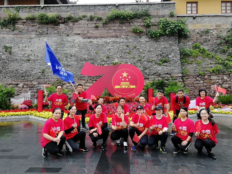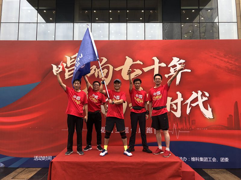 活動(dòng)在莊嚴(yán)的升國(guó)旗儀式中拉開(kāi)帷幕,秋風(fēng)細(xì)雨阻擋不了隊(duì)員們的飽滿熱情,在團(tuán)隊(duì)風(fēng)采展示和熱身運(yùn)動(dòng)后,各代表隊(duì)高擎維科旗,按照設(shè)定的規(guī)劃路線,用腳步跑出一張張“愛(ài)國(guó)”主題的路線,用團(tuán)隊(duì)合影記錄這一刻美好瞬間。在維科人獨(dú)具匠心的創(chuàng)意下,“70”“五星紅旗”“中國(guó)”等元素活靈活現(xiàn)地呈現(xiàn)開(kāi)來(lái),在城市的大街小巷,努力奔跑著的維科團(tuán)隊(duì),如同一群“追夢(mèng)人”,成為了一道亮麗的風(fēng)景線。每一位隊(duì)員都收獲了專屬定制的活動(dòng)文化衫和紀(jì)念獎(jiǎng)?wù)拢陡袠s耀!