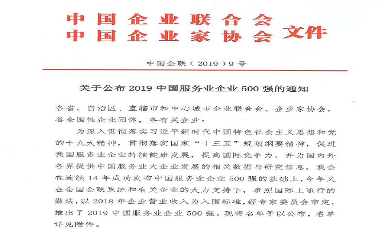 維科集団は「2019年度中國サービス業(yè)トップ500企業(yè)」の栄譽(yù)を獲得