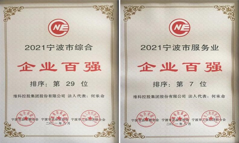 維科集団は2020寧波市総合企業(yè)トップ100、サービス業(yè)企業(yè)トップ100の栄譽(yù)を獲得