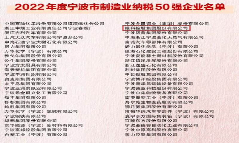 7月14日午前、「寧波経済アカデミー」と呼ばれる2022寧波革新創(chuàng)業(yè)風(fēng)雲(yún)ランキングが再び幕を開け、維科グループは再び納稅ランキングに輝き、2022年度寧波市製造業(yè)納稅50強を獲得した。